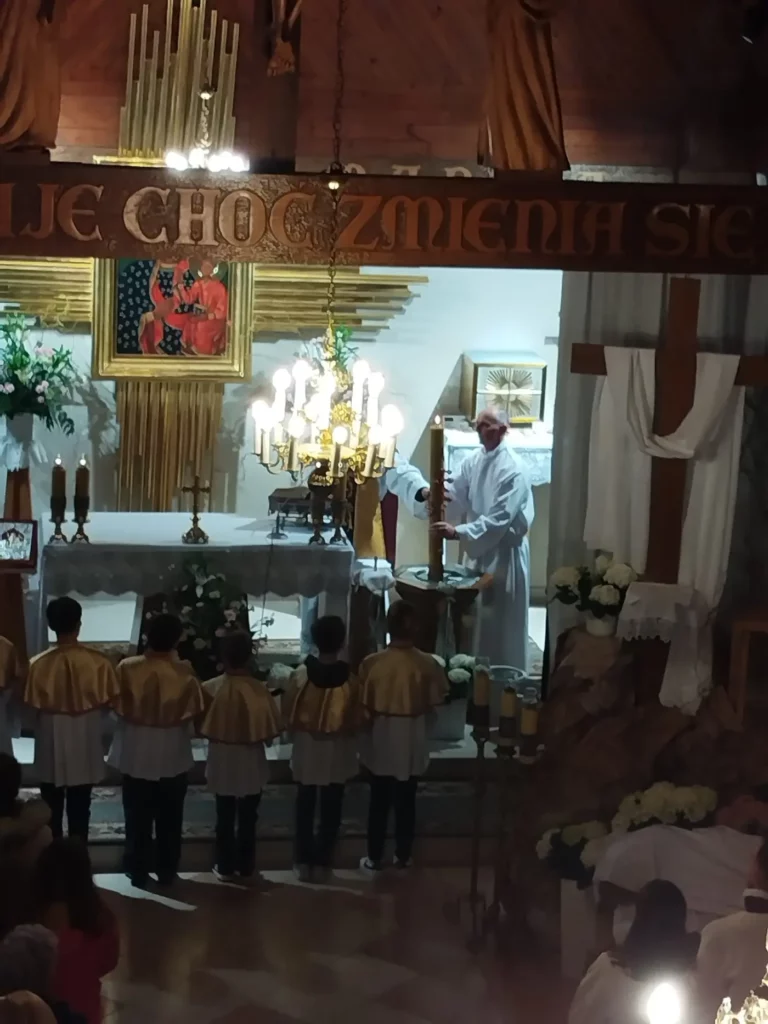Wielka Sobota była czasem ciszy, zadumy i czuwania przy Grobie Pańskim. Do południa odbywało się poświęcenie pokarmów na stół wielkanocny. Wieczorem, po zapadnięciu zmroku, o godz. 20:00 rozpoczęliśmy uroczystą Wigilię Paschalną – najważniejszą liturgię w ciągu całego roku.