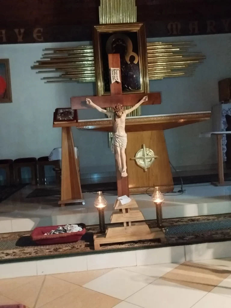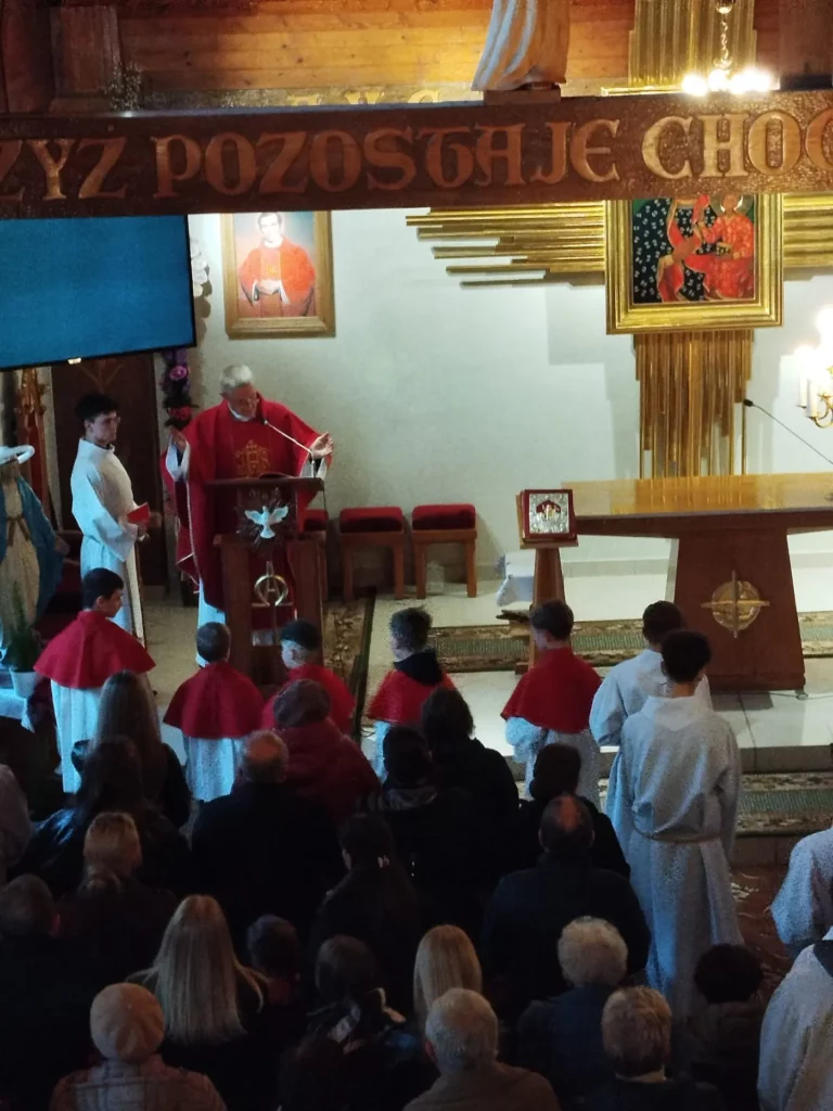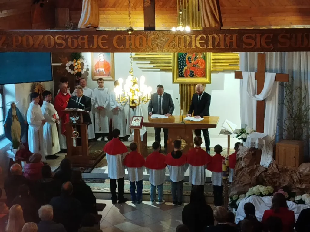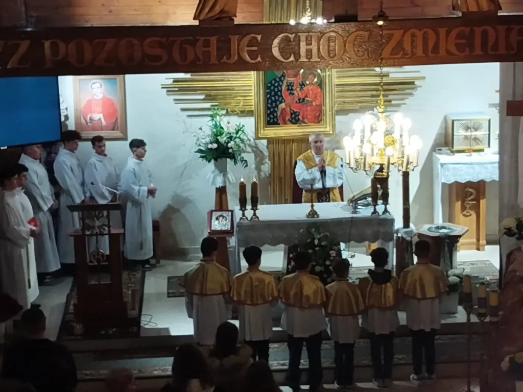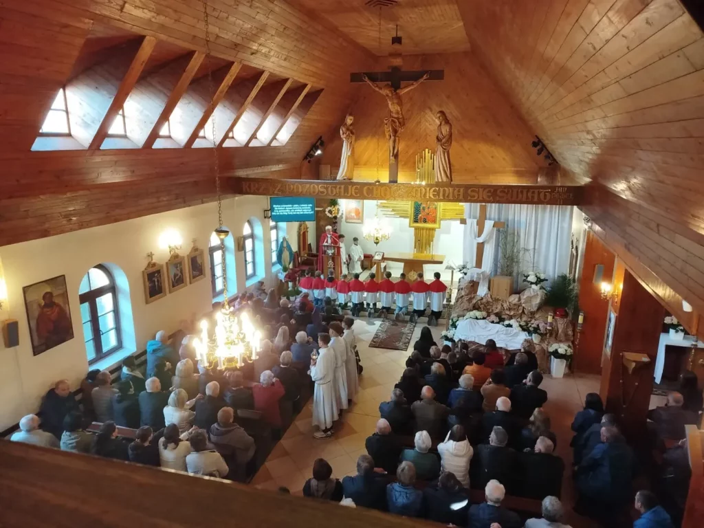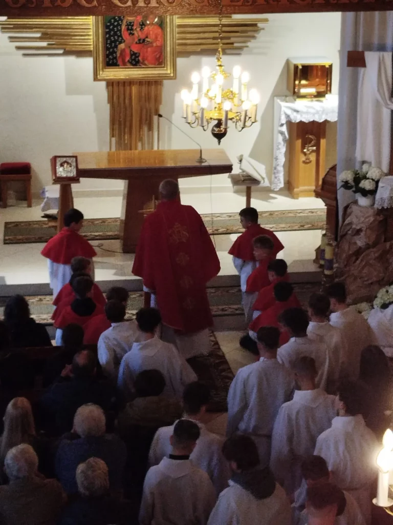 W Wielki Czwartek zgromadziliśmy się na Mszy Świętej Wieczerzy Pańskiej. Uczestnicząc w Eucharystii, dziękowaliśmy Panu Jezusowi za dar Sakramentu Eucharystii i Kapłaństwa. Po zakończeniu liturgii Najświętszy Sakrament został przeniesiony do Ołtarza Adoracji, zwanego Ciemnicą. Adorację poprowadziła młodzież, rozważając w obecności Pana Jezusa tajemnicę Bożej Miłości objawionej w Eucharystii oraz odpowiadając na Jego wezwanie „Czuwajcie”, towarzysząc modlitwą opuszczonemu przez wszystkich Zbawicielowi.
