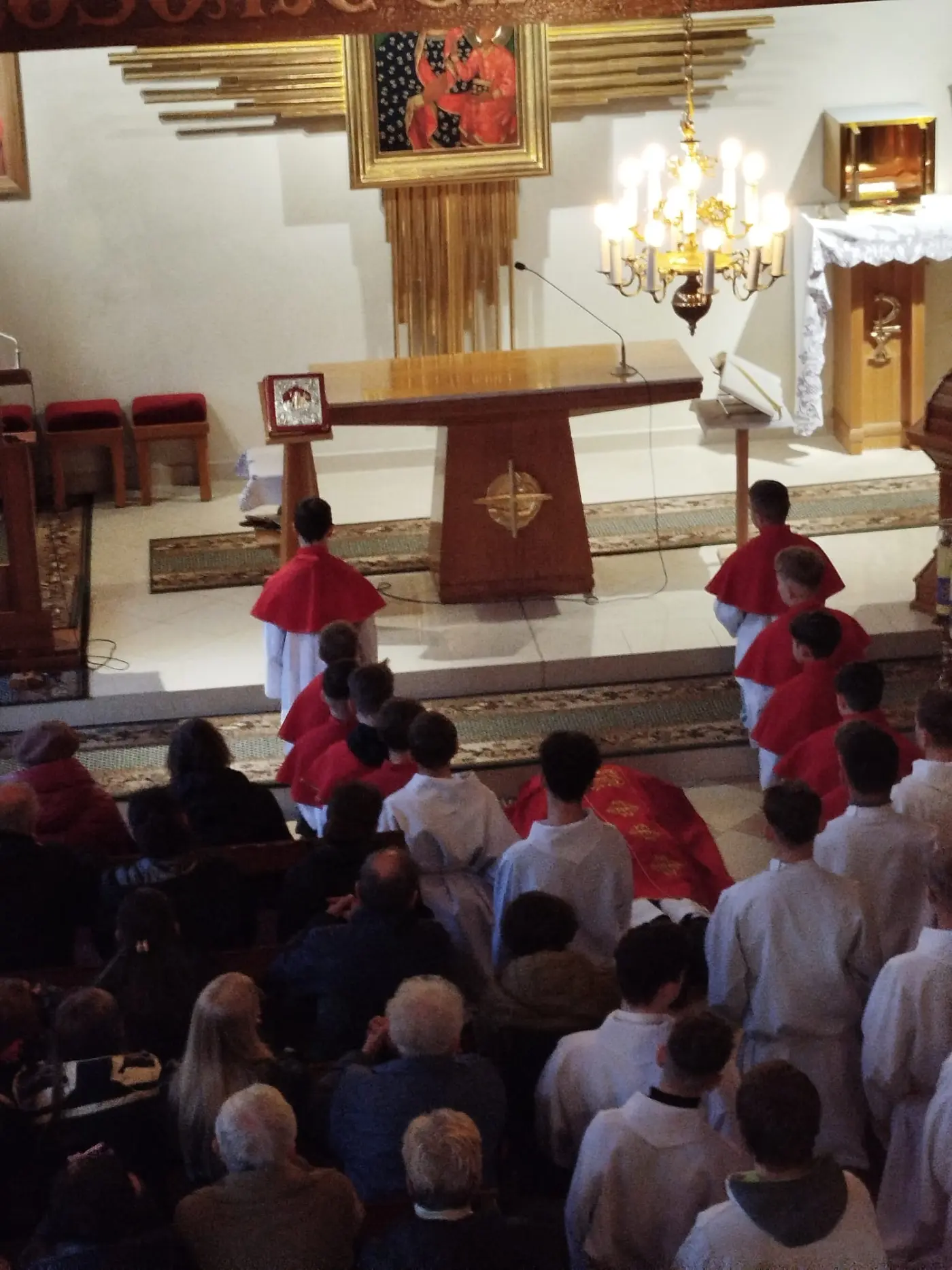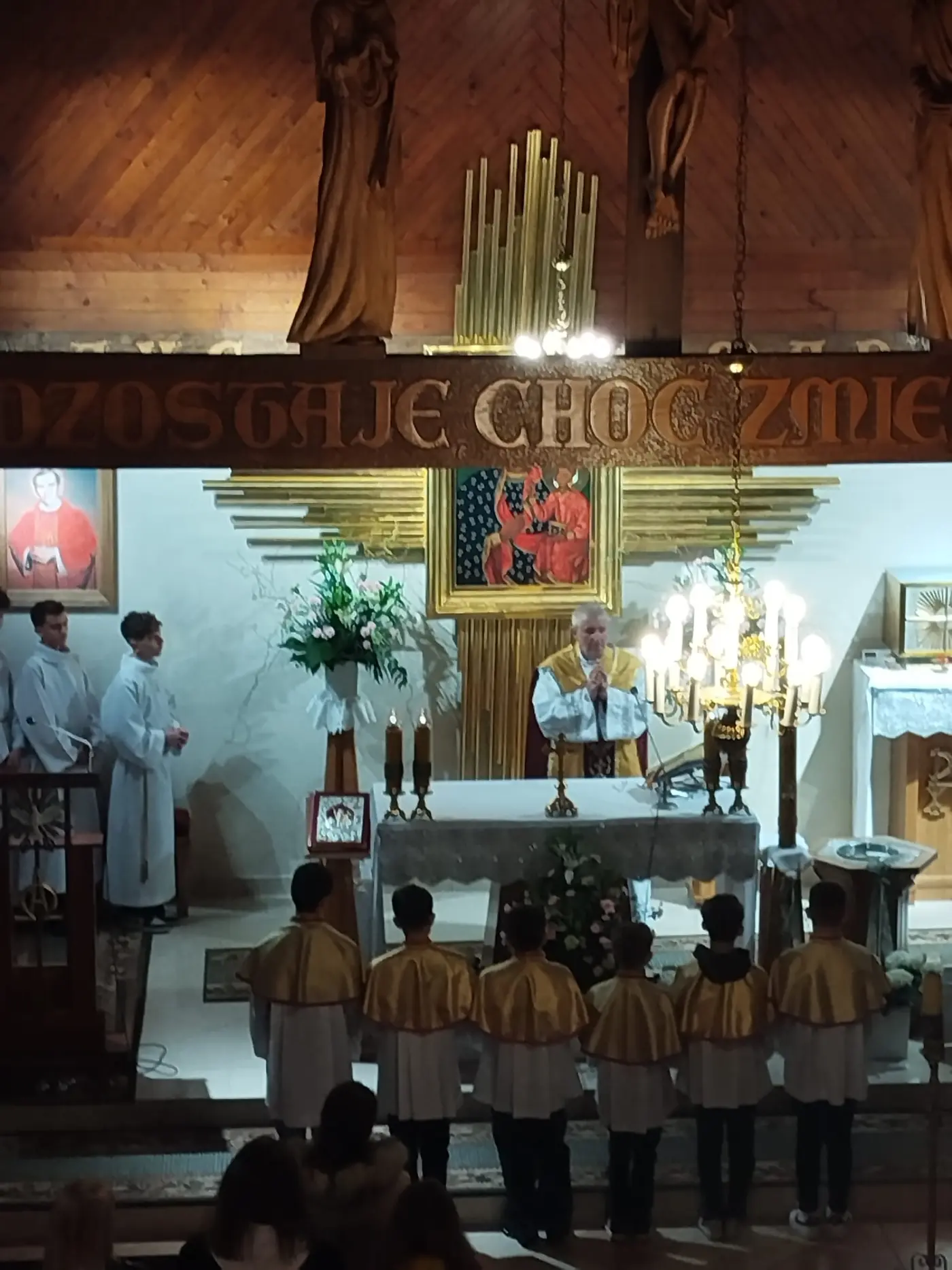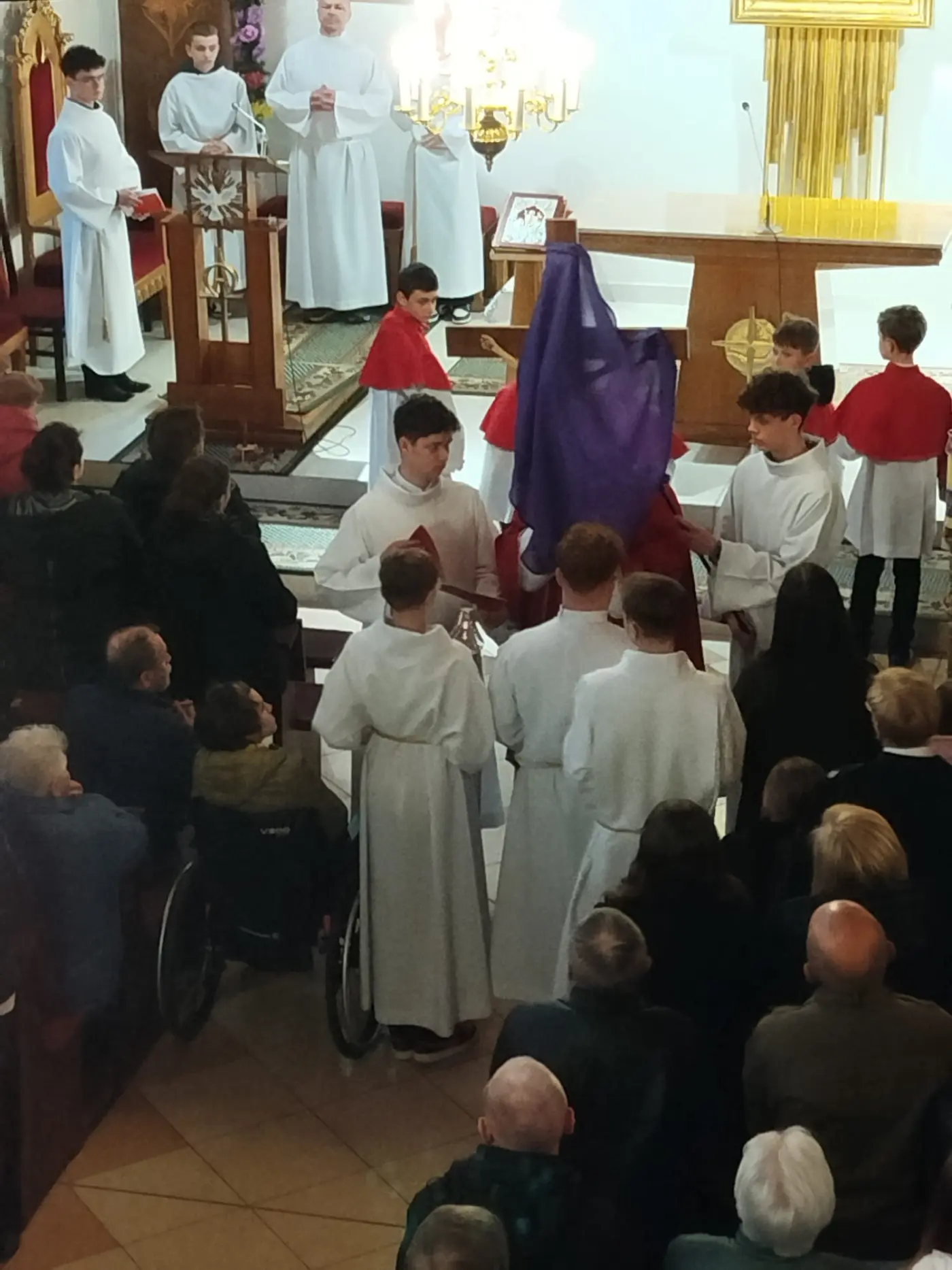 W Wielki Czwartek zgromadziliśmy się na Mszy Świętej Wieczerzy Pańskiej. Uczestnicząc w Eucharystii, dziękowaliśmy Panu Jezusowi za dar Sakramentu Eucharystii i Kapłaństwa. Po zakończeniu liturgii Najświętszy Sakrament został przeniesiony do Ołtarza Adoracji, zwanego Ciemnicą. Adorację poprowadziła młodzież, rozważając w obecności Pana Jezusa tajemnicę Bożej Miłości objawionej w Eucharystii oraz odpowiadając na Jego wezwanie „Czuwajcie”, towarzysząc modlitwą opuszczonemu przez wszystkich Zbawicielowi.