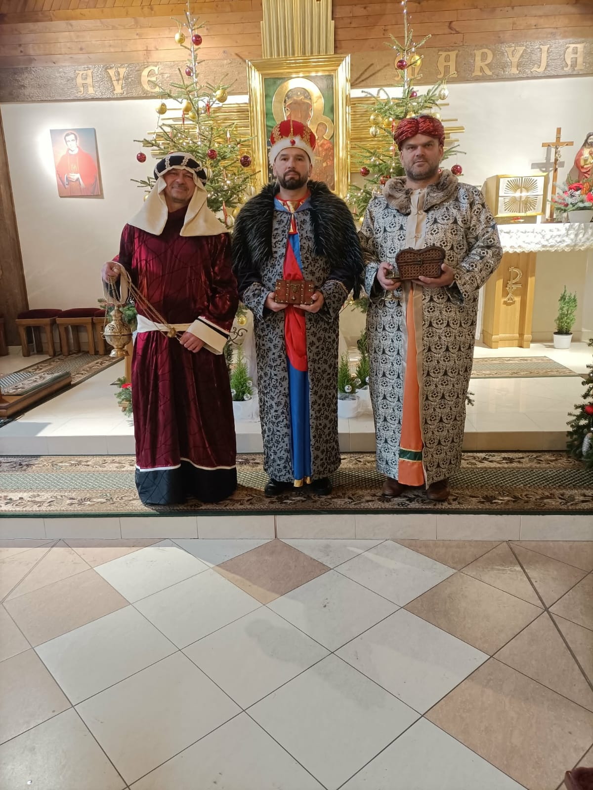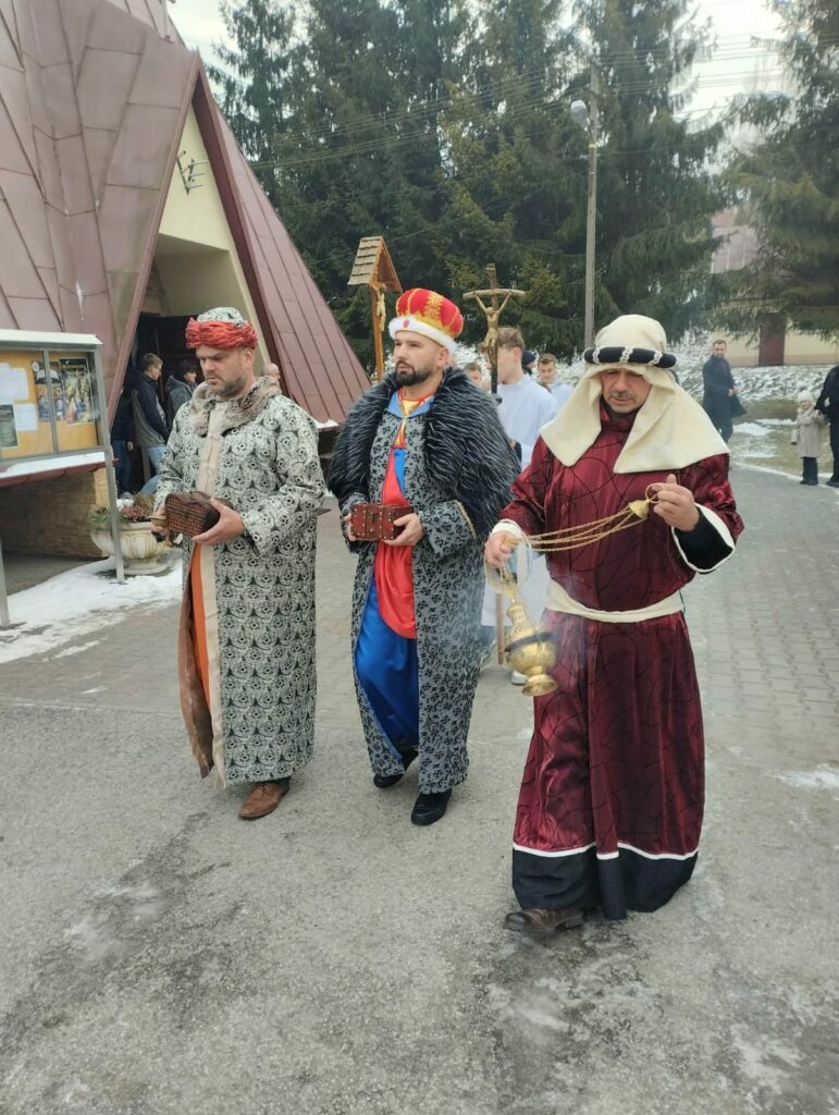 Podczas sumy gościli w naszym kościele Trzej Królowie, którzy oddali pokłon Dzieciątku, składając symboliczne dary: złoto, kadzidło i mirrę. Ich obecność była pięknym znakiem wiary oraz poszukiwania Boga, który objawia się tym, którzy szczerze Go szukają.